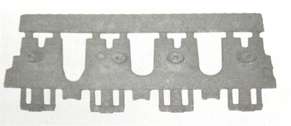 此種設計方式可以減少對孔的初加工工序。但在生產過程中,兩側的小挺注孔生產中無法制造出來,在射砂過程中此處不能全部射滿,導致廢芯率非常高,在對排氣系統(tǒng)以及射砂壓力進行調整后,廢芯率還是居高不下并且也影響正常調試生產。對于此問題對挺桿室進行優(yōu)化,將兩側透孔在精密鑄造工藝上去除,改為加工孔,相應地將與主體配合的兩處芯頭去掉,與主體配合部位變小。修改后挺桿室生產正常,現(xiàn)場生產班產可以達到150模。圖3為更改后的結構。